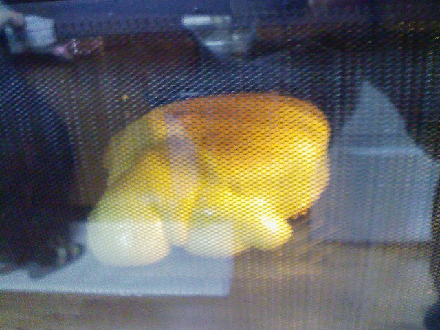 オーブンの中で型からあふれながら焼かれていくケーキ(爆)