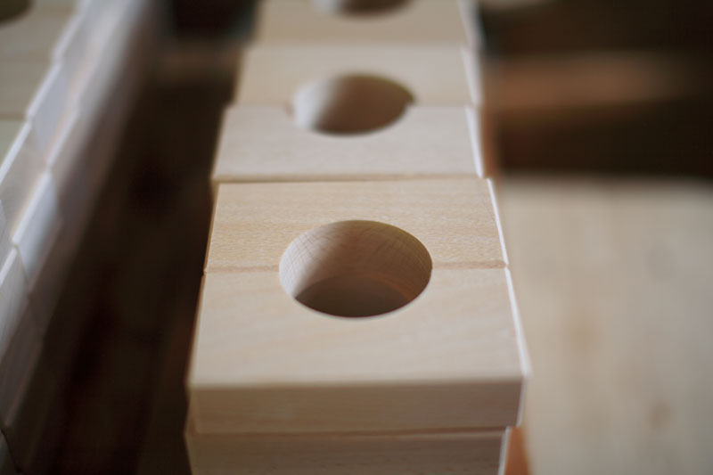 今、木の積み木を作っています。