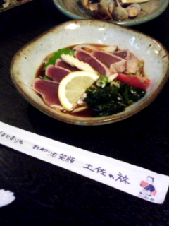 夜は近くの居酒屋でかつおのタタキを食いながら、